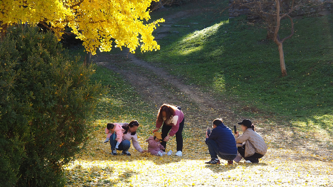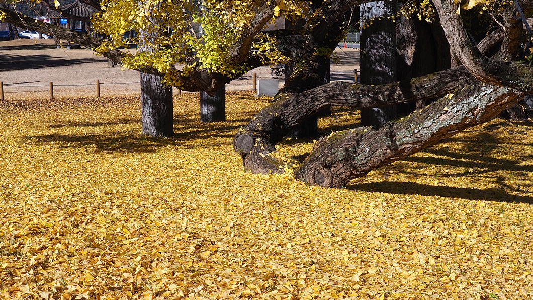 바닥에는 떨어진 은행잎이 수북합니다.