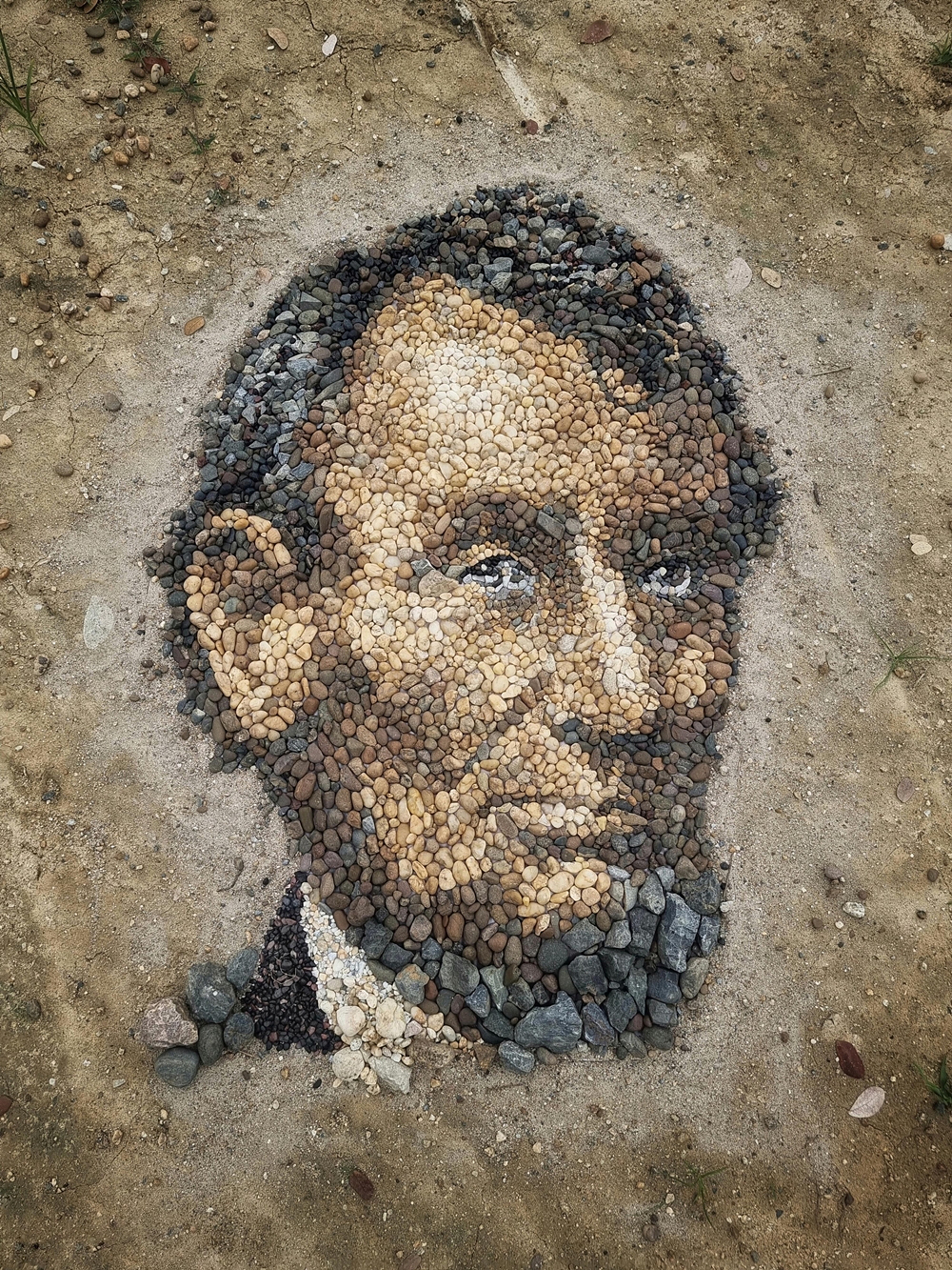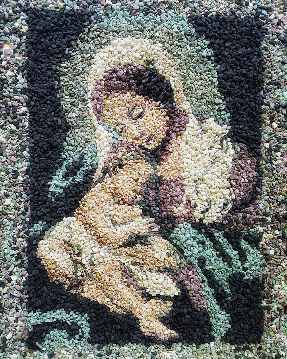 그의 작품들은 모두 작은 돌멩이나 자갈로 되어 있기 때문입니다.