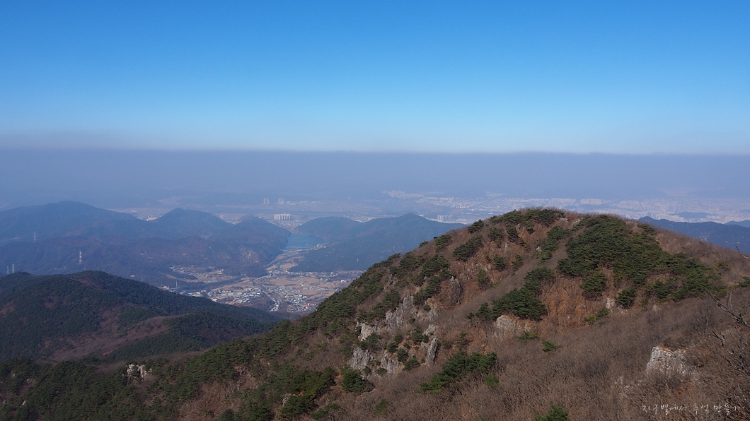 날씨가 조금 탁하여 그림이 맑지가 않은데 그래도 건너편 봉우리들은 보입니다.