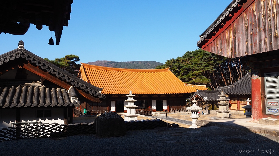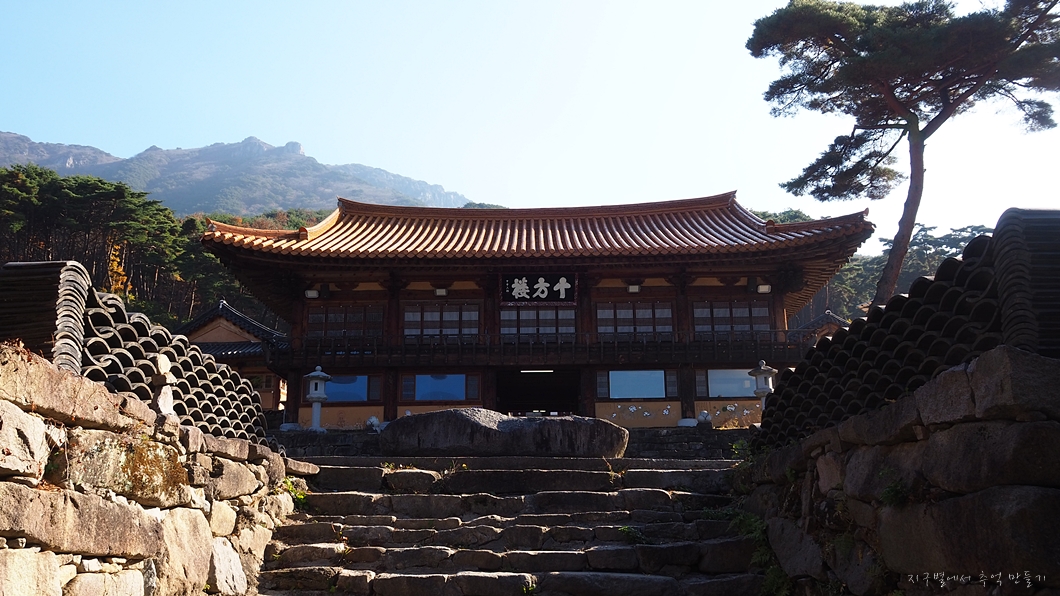 여느 절에서 보기 힘든 황색 기와 지붕(시방루)이 특징입니다.