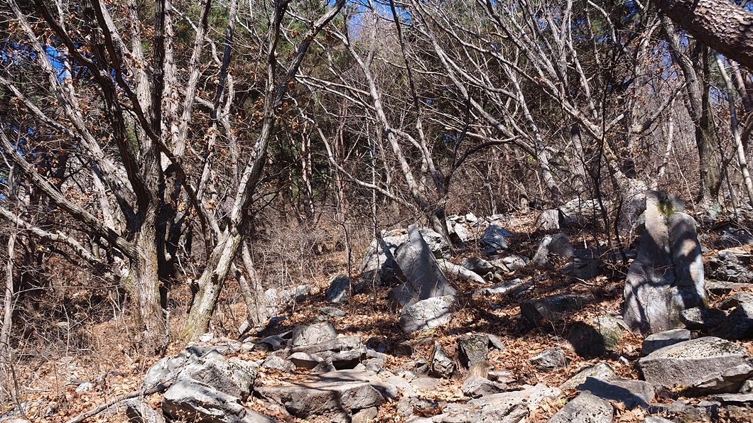 비슬산 정상부의 특징인 커다란 덤이 나타나기 시작합니다.