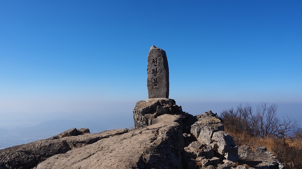 앞면에는 한글로 뒤편에는 한문으로 천왕봉이라고 쓰여 있습니다.