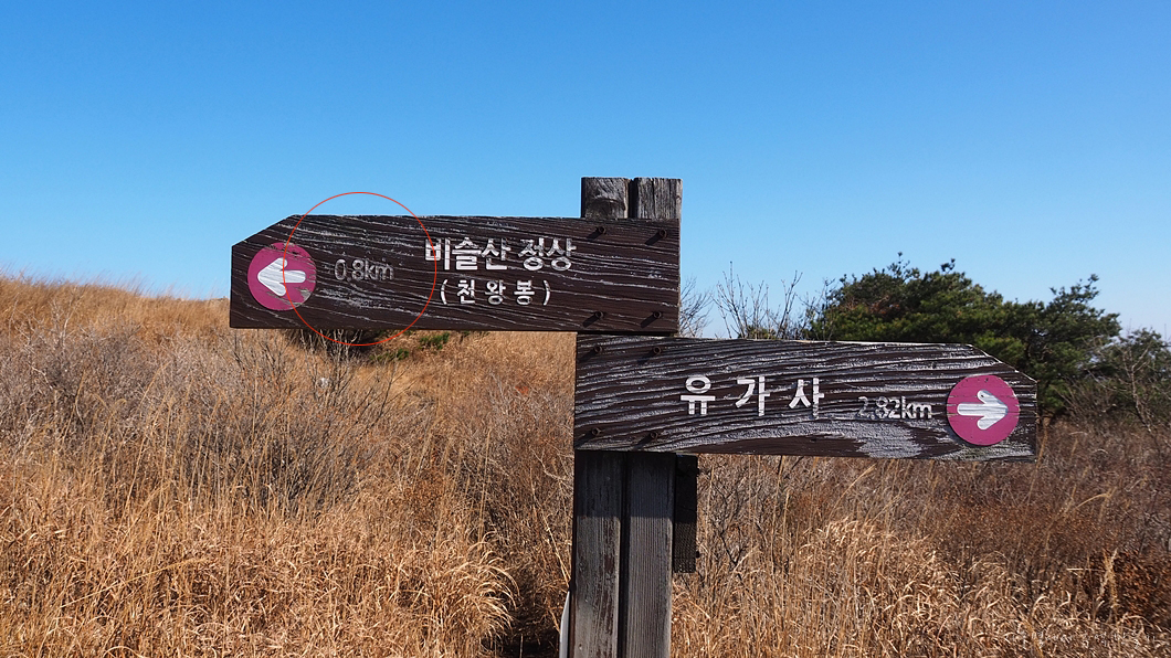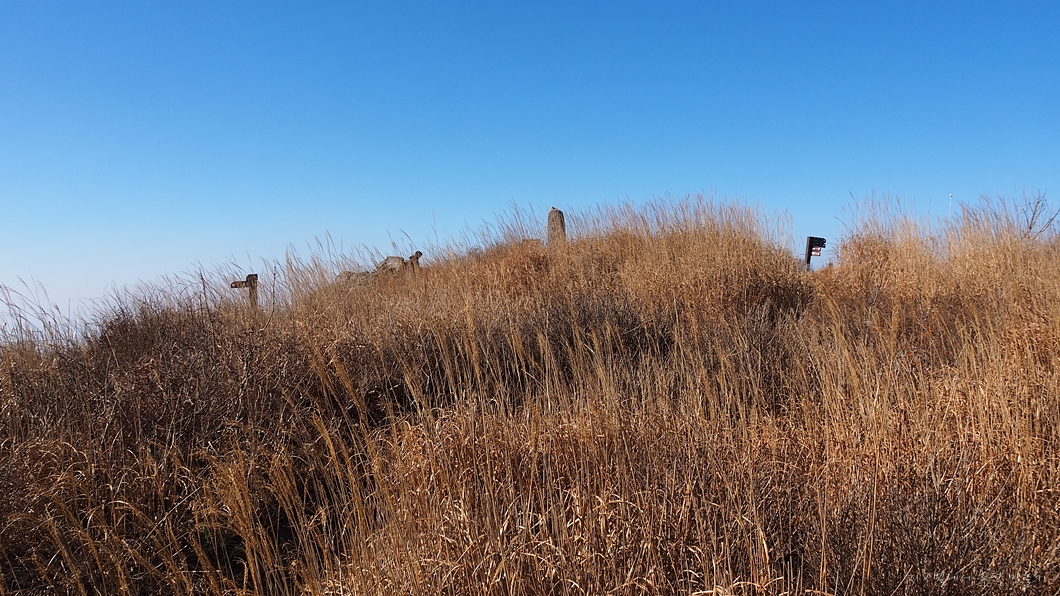 마른 억새로 되어 있는 정상 인근은 온화한 느낌이 드는 장소입니다.