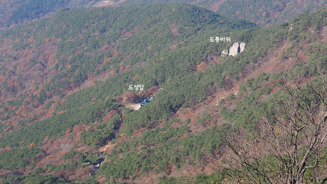 우측으로는 도성암과 도통바위가 내려다보입니다.