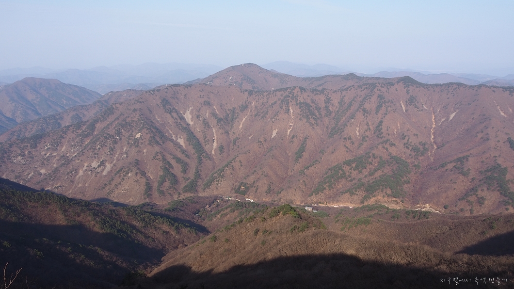중간에 밋밋한 능선은 능동산입니다.
