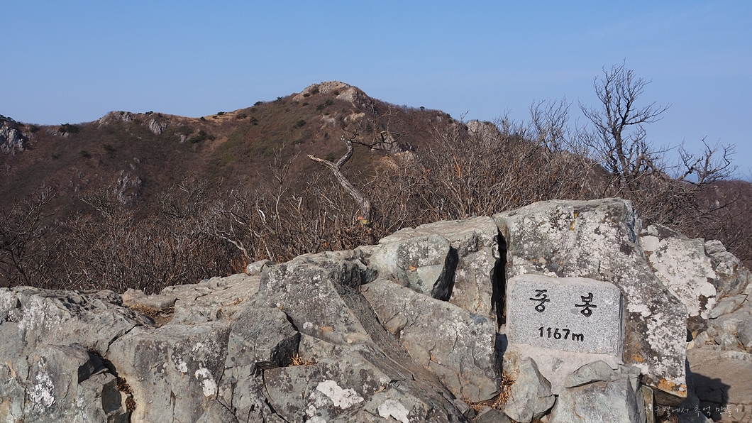 좌측으로 옹강산이 살짝 보이고 중앙에 솟은 산이 문복산입니다.