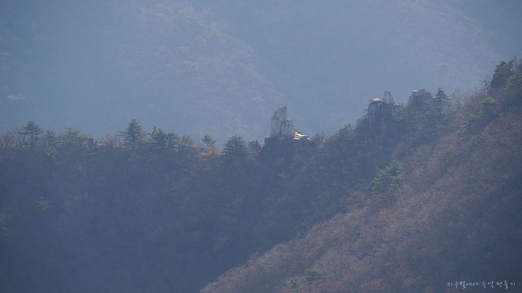 건너편으로 보이는 능동산 자락 입석대를 당겨 봤습니다.
