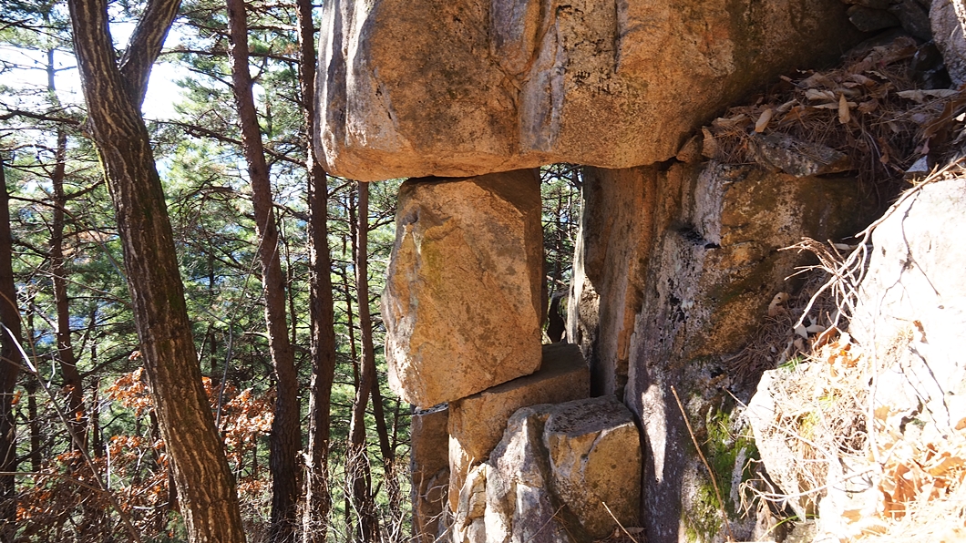 바위가 협곡으로 되어 있어 오르기가 쉽지 않습니다.