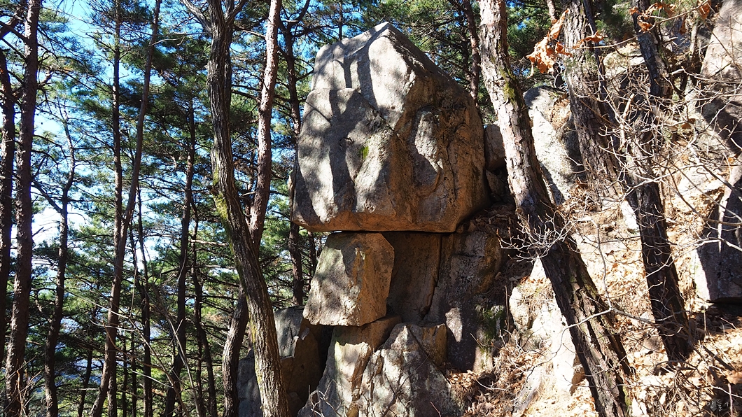 일단 앞쪽의 바위가 우람하길래 위로 한번 올라가 보기로..