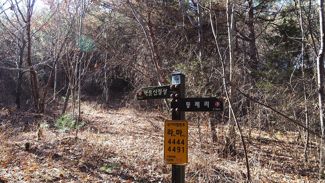 산행 코스 : 동례마을 - 처사바위 - 정상 - 달분재 - 안금마을 - 평촌마을 - 동례마을(원점회귀)