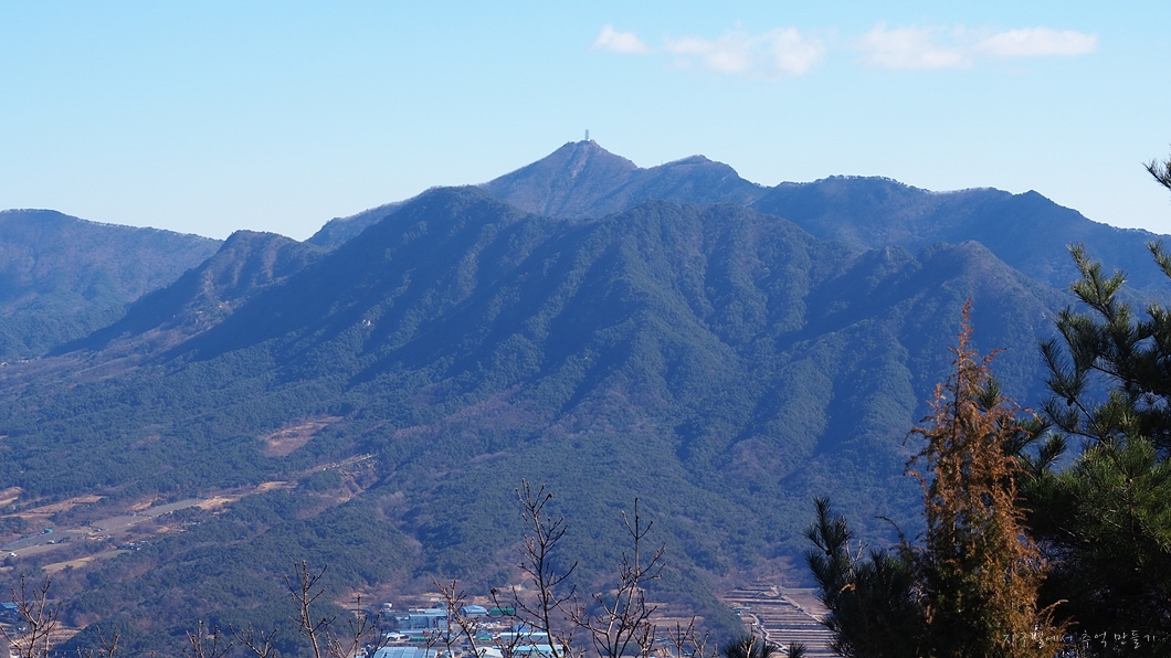 비계산과 두무산을 당겨보니 중간에 고령의 진산인 미숭산도 보이고 그 뒤로 멀리 비슬산도 희미하게 조망이 됩니다.