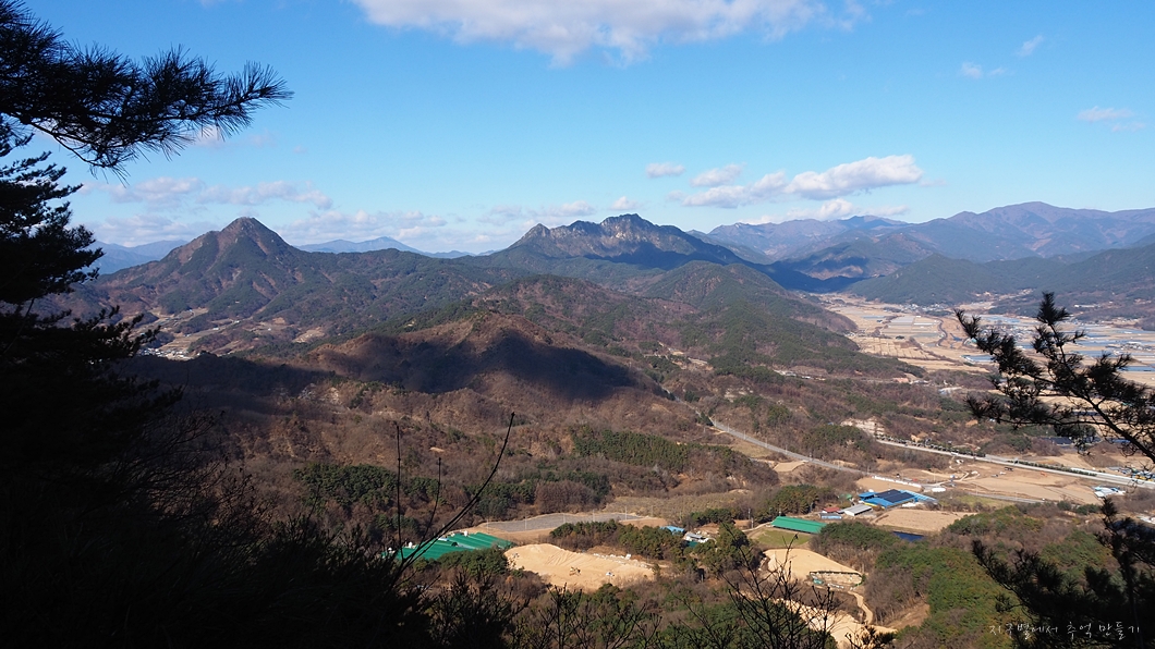 그 뒤로 멀리 수도산과 단지봉이 보이고 우측으로 오면서 우두산과 비계산이 조망이 되네요.