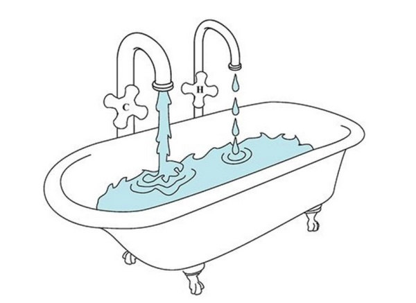 욕조에 뜨거운 물과 찬물이 나오는 수도꼭지가 있는데 찬물 수도꼭지를 열면 욕조를 채우는 데 30분이 걸리고, 온수 수도꼭지를 열면 1시간이 걸립니다.