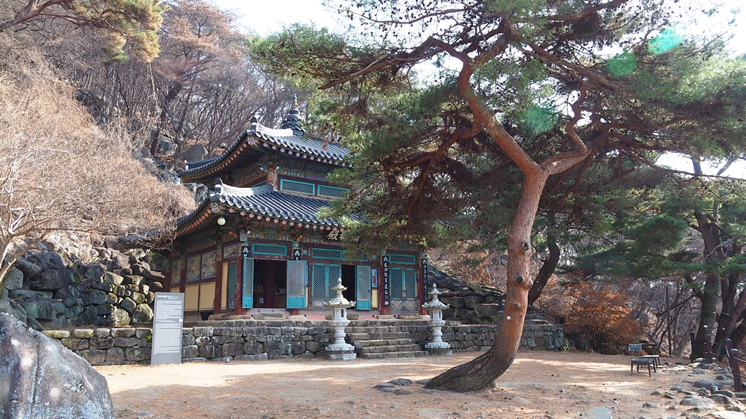 석탑과 대웅전의 배치가 일반 절집에서 보는 것과는 다르게 특이하게 되어 있네요.