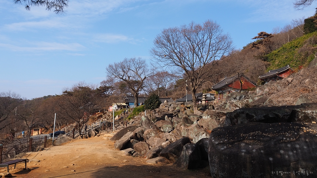 만어사 절까지는 자동차로 쉽사리 오를 수 있고 이곳에서 산행으로 정상까지는 편안한 임도길로 30분 정도 오르면 된답니다.