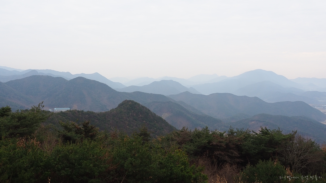 이 방향으로 영남알프스 조망이 멋진 곳인데 대기가 맑지 못하네요.