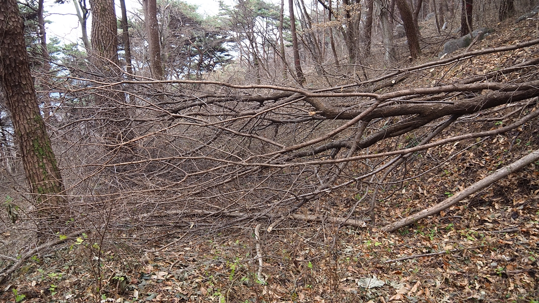 임도로 하산하는 길에는 벌목을 한 나무들을 임도에 마구 방치를 해 두어 그것 넘어온다고 해 먹었네요.