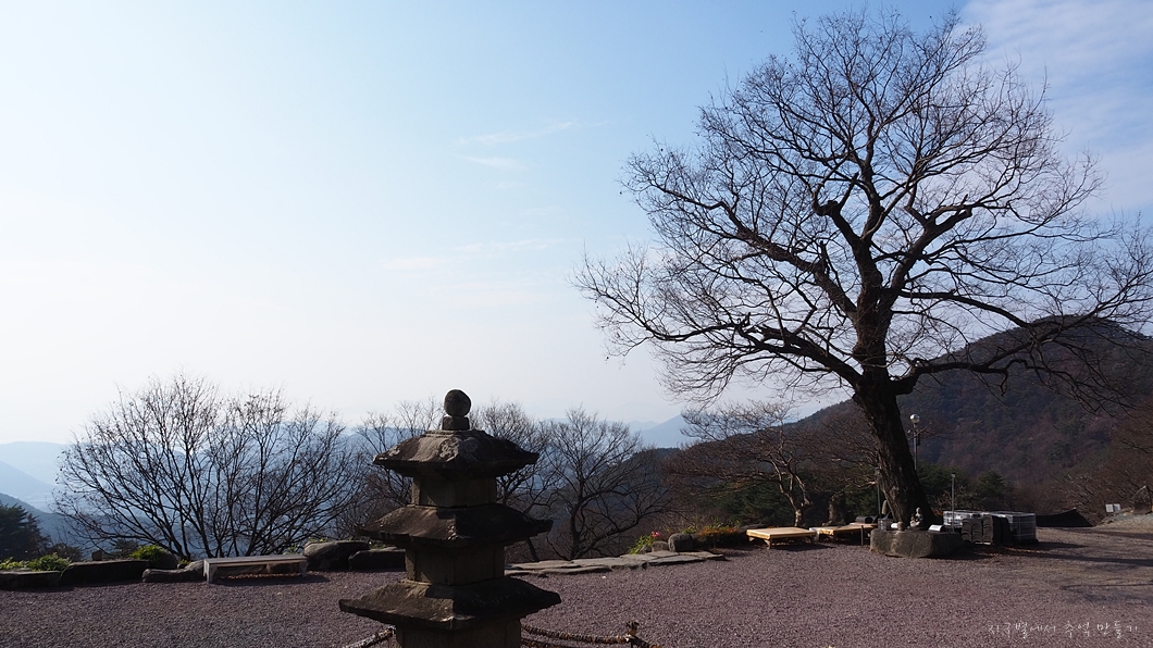 종석 위로 보이는 산이 만어산입니다.