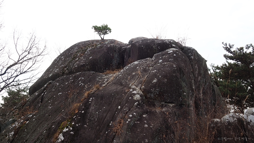 정상 앞두고 만난 커다란 암봉에는 외로운 소나무 한그루가..