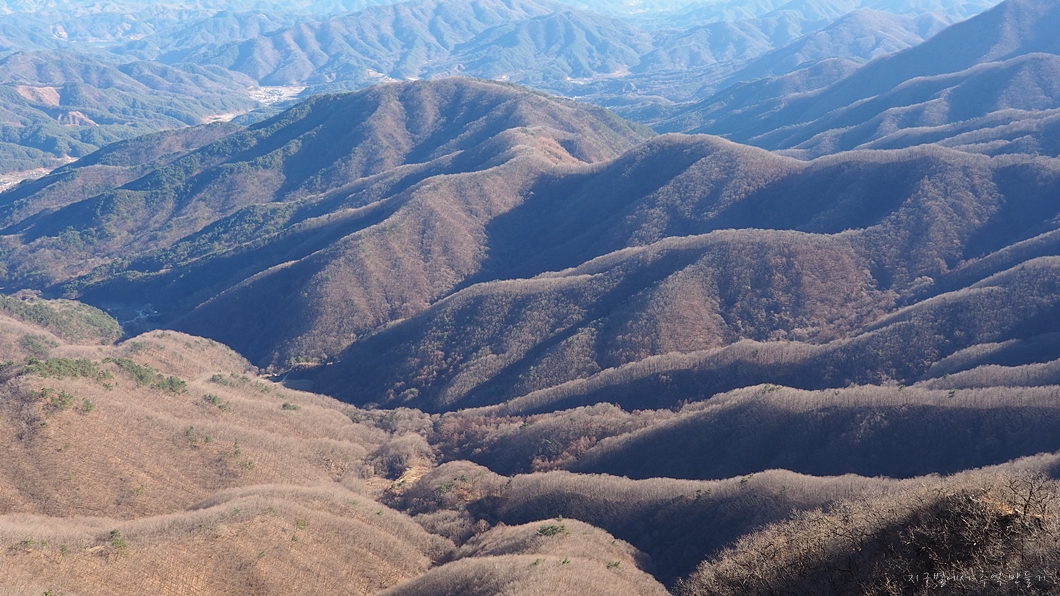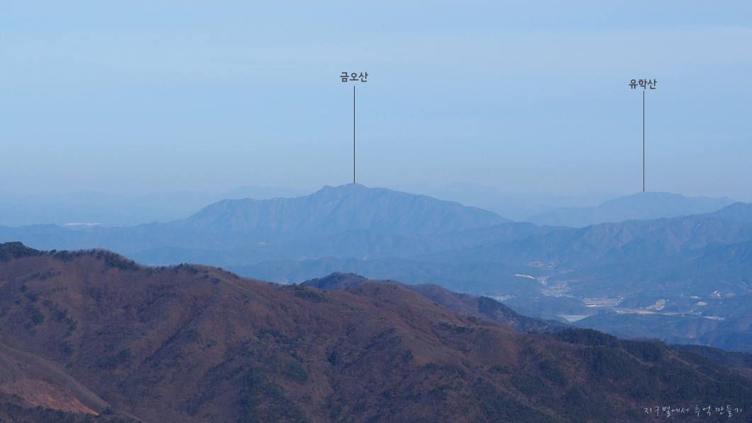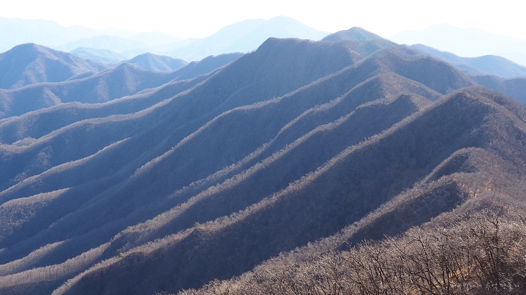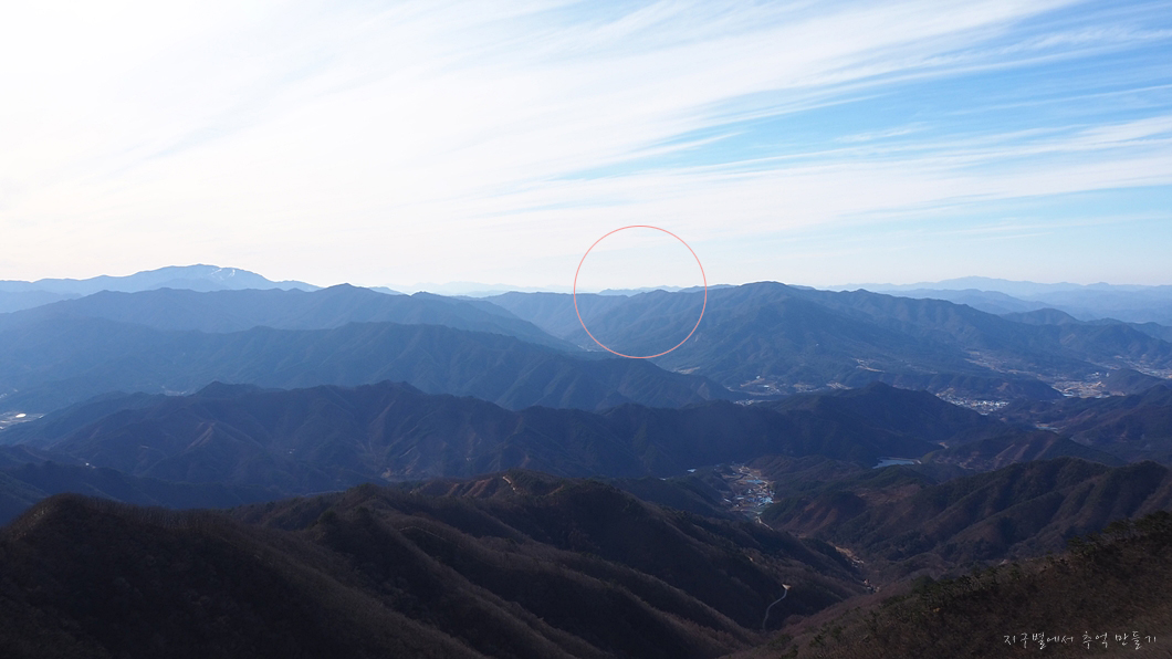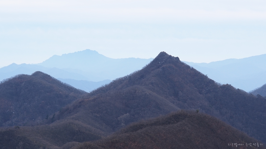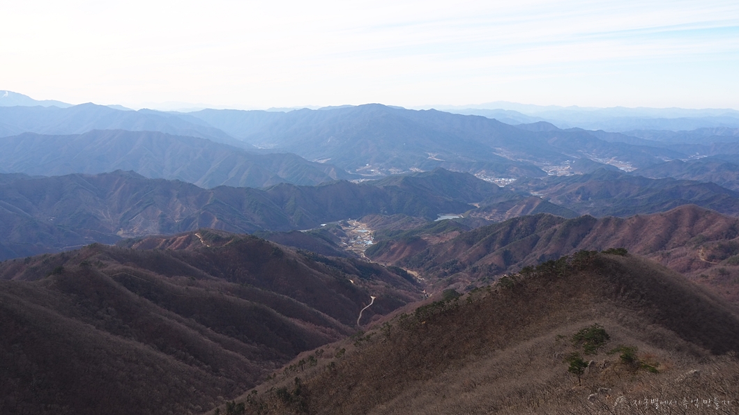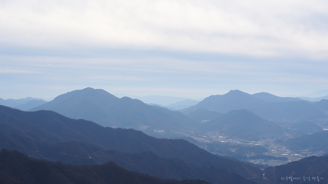 두 산의 사이에 보이는 산이 거창 감악산 같은데 확실치는 않구요.