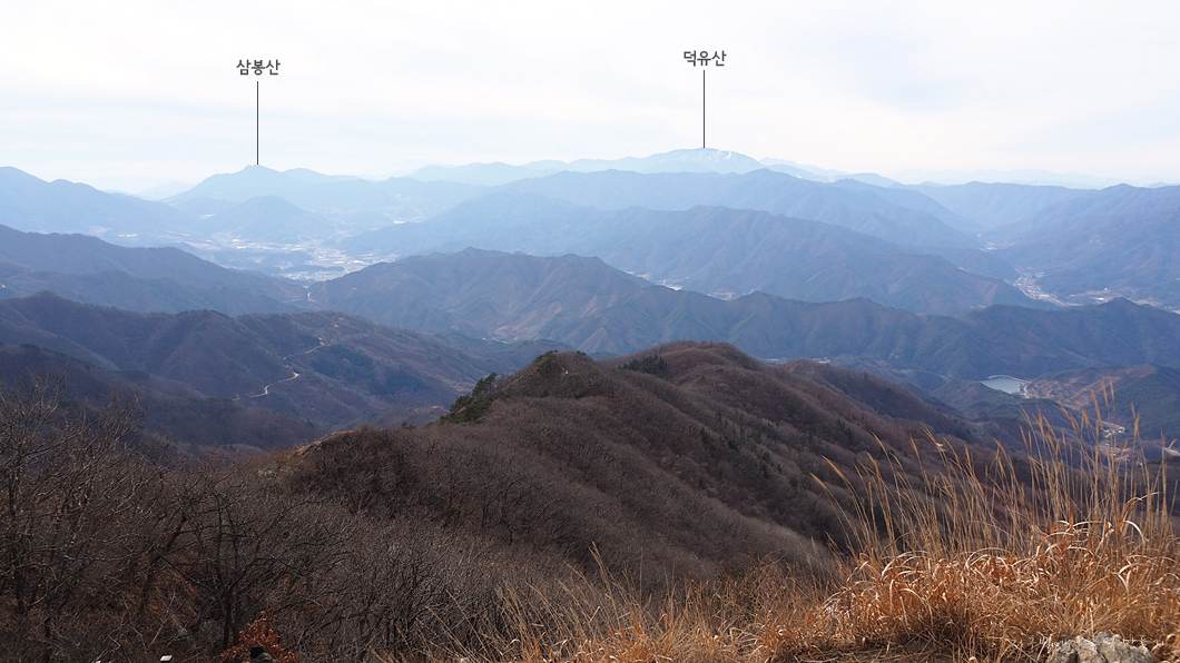 좌측 대덕산과 우측의 삼봉산이 조망됩니다.