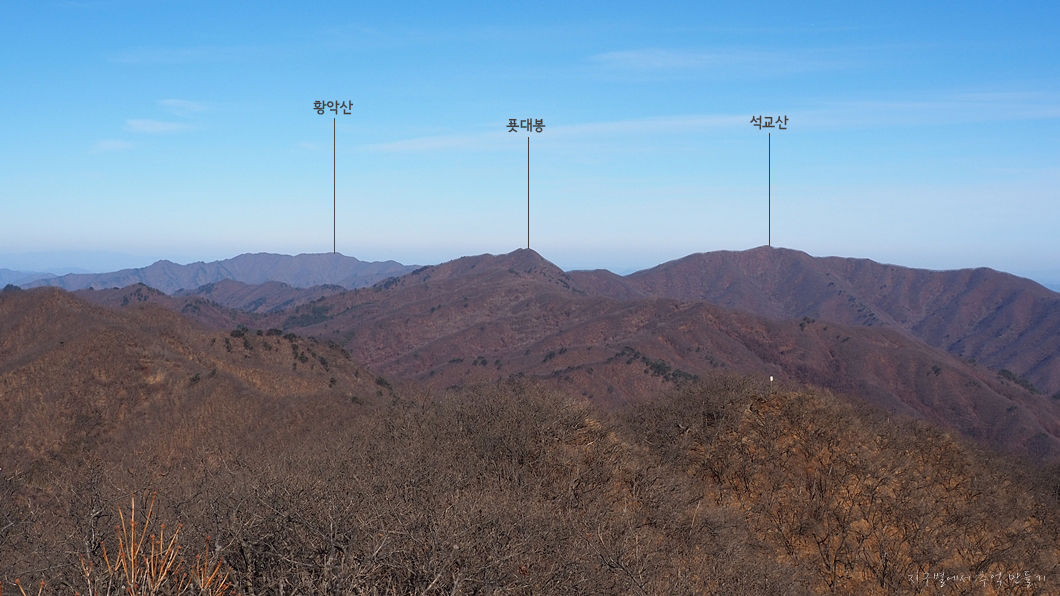 앞쪽으로는 석기봉이 잡목 사이로 보이고요.