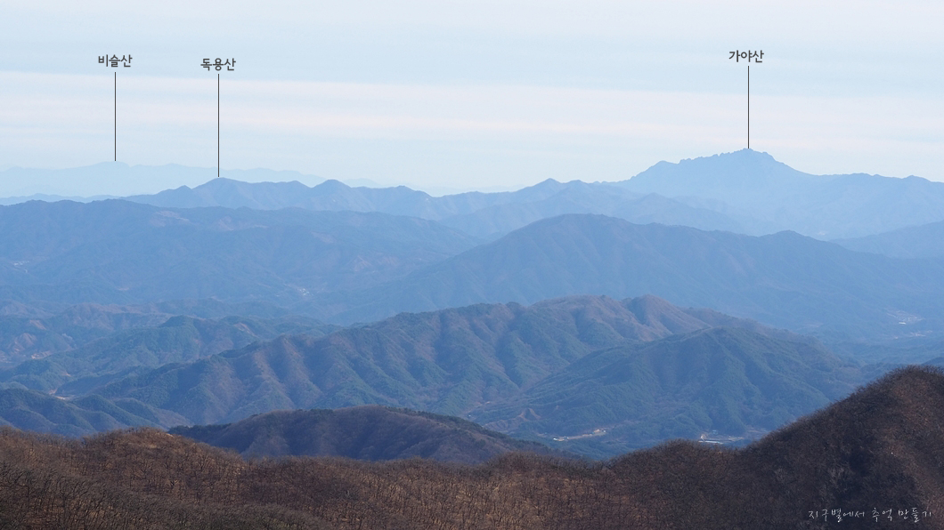 가야산을 조금 당겨서 보니 좌측으로 멀리 비슬산도 조망이 되네요.