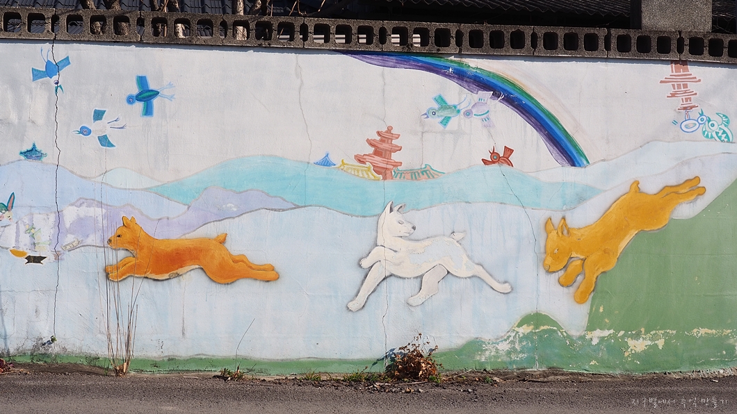 이곳 탑골마을은 동네 벽화에 거의 개 그림이 그려져 있는데 주인공은 동경입니다.