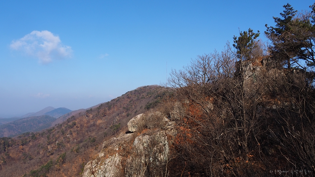 능선 위에 생태보호를 위해 출입금지라고 되어 있는 커다란 바위가 있어 올라가 봤는데..
