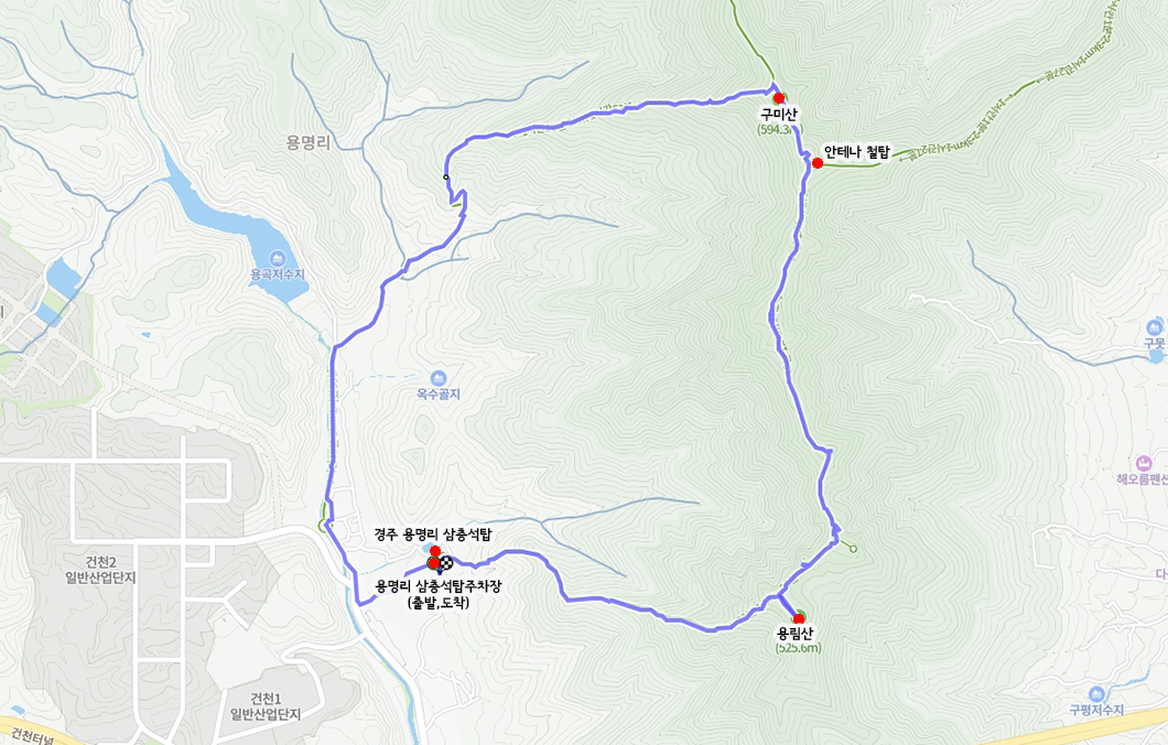 산행 코스 : 경주 용명리 삼층석탑 주차장 - 용림산 - 구미산 - 주차장(원점회귀)