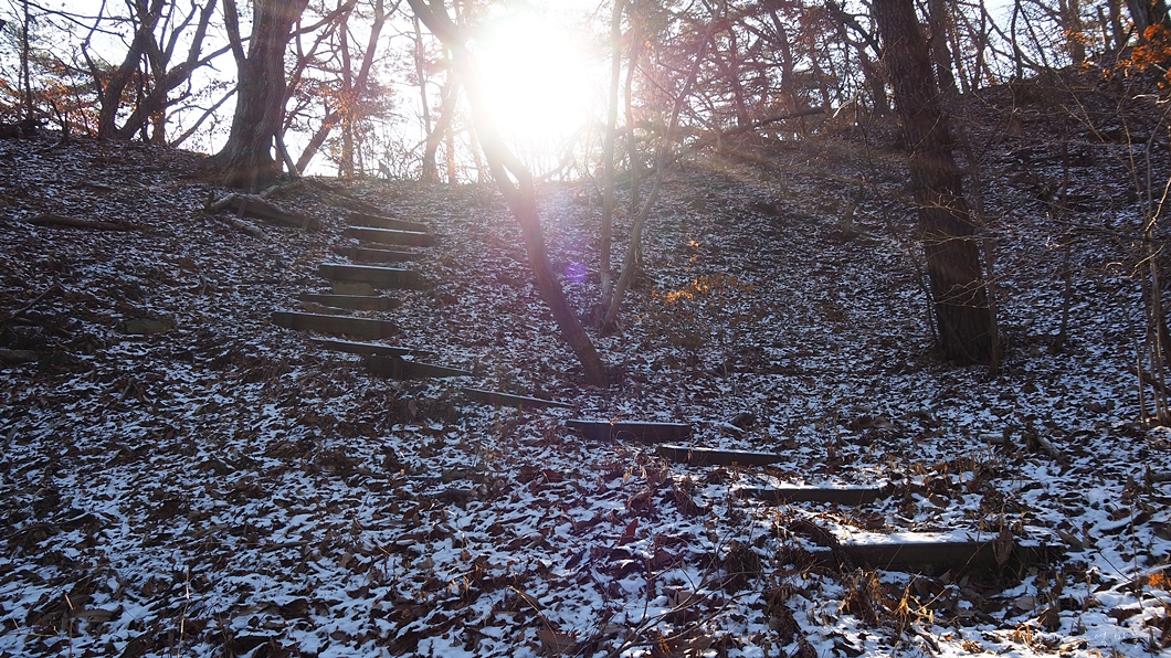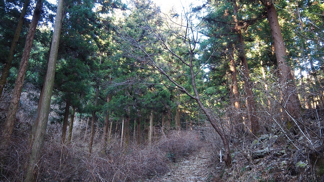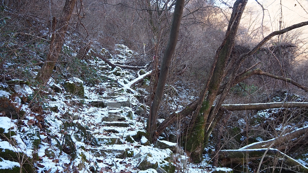 등산로는 눈이 내린 데다 많이 걷지 않는 산길이라 조금 희미합니다.