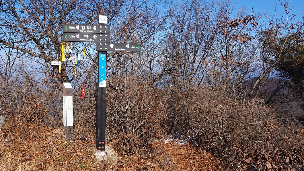 오늘 산행은 밤재가 아닌 하산 지점으로 이용하는 현천마을에서 시작하여 정상 오르고 밤재로 하산하여 지리산 둘레길 산동에서 주천 구간을 걸어서 제자리로 돌아왔네요.