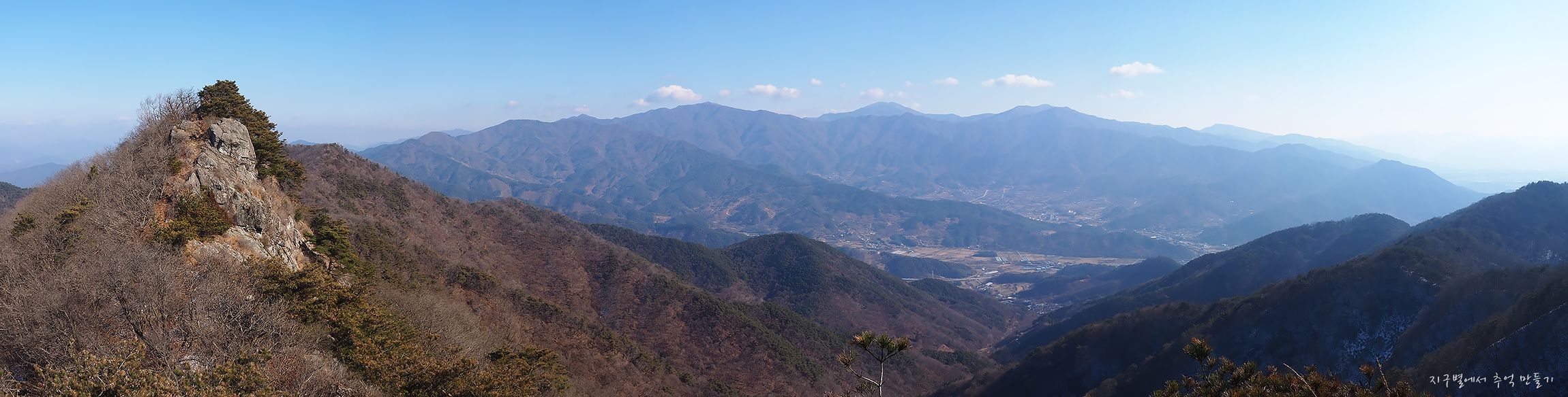 뒤돌아 본 정상과 남원 쪽 파노라마 풍경.