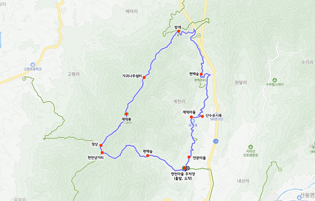 산행 코스 : 현천마을 - 정상 - 계척봉 - 밤재 - 지리산둘레길(밤재~현천마을 구간) - 현천마을(원점회귀)