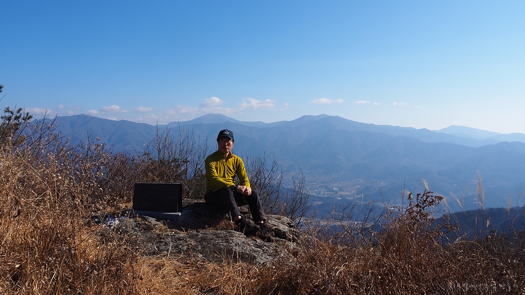 지리산을 배경으로 구례에서 세운 정상석 옆에 앉아 봤습니다.