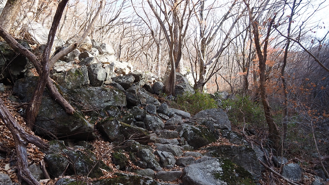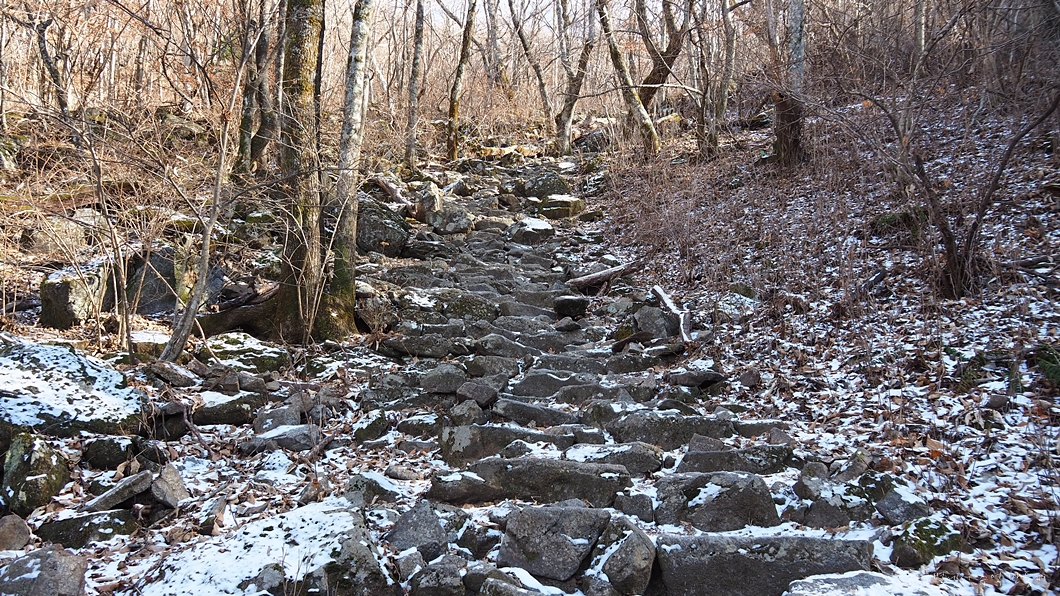 참샘에서 소지봉 구간은 경사 급한 돌계단길.
