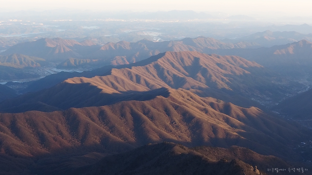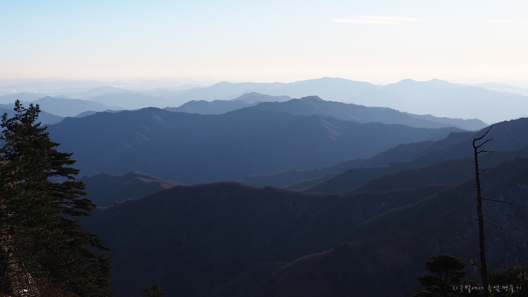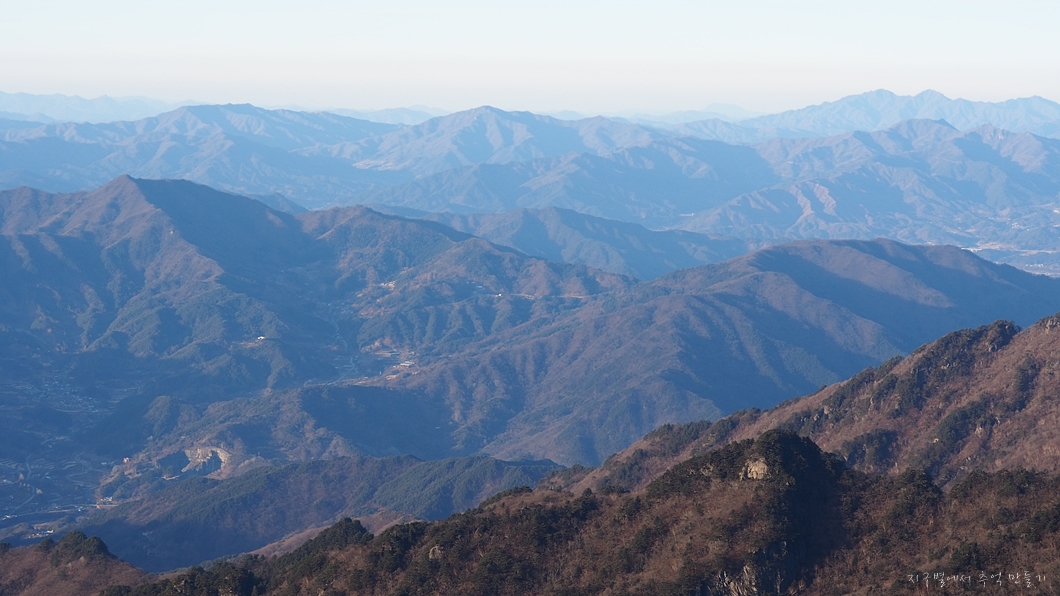 가까이 있는 능선은 지리조망공원과 오도재에서 좌우로 있는 삼봉산과 법화산.