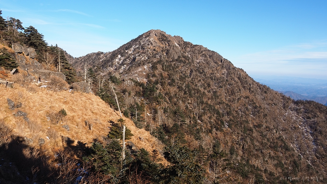 우측에 뾰족하게 보이는 봉우리는 노고단.