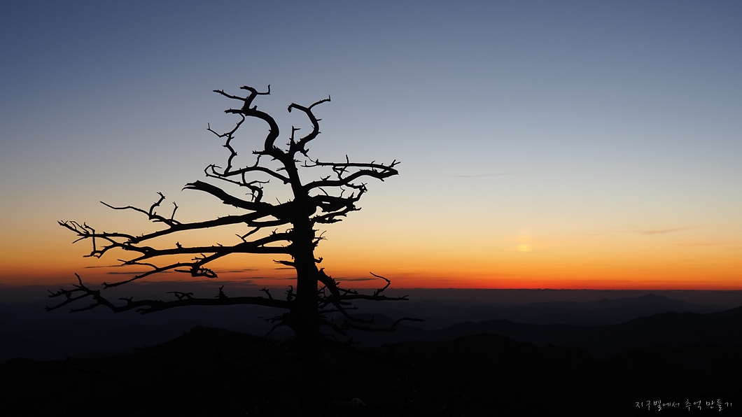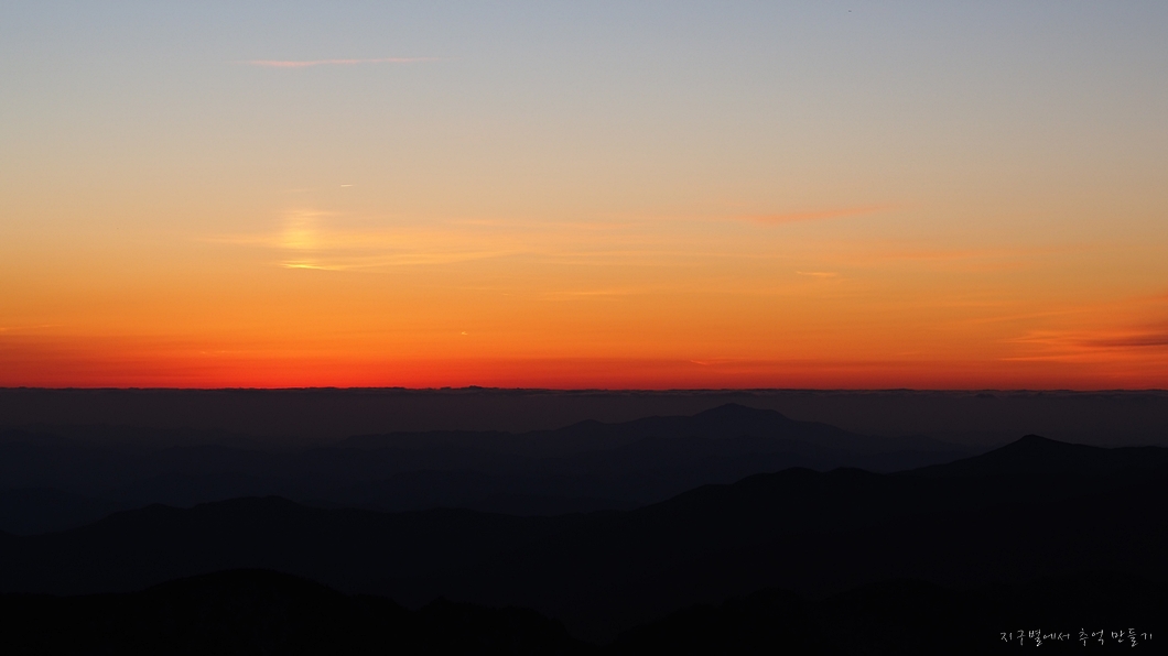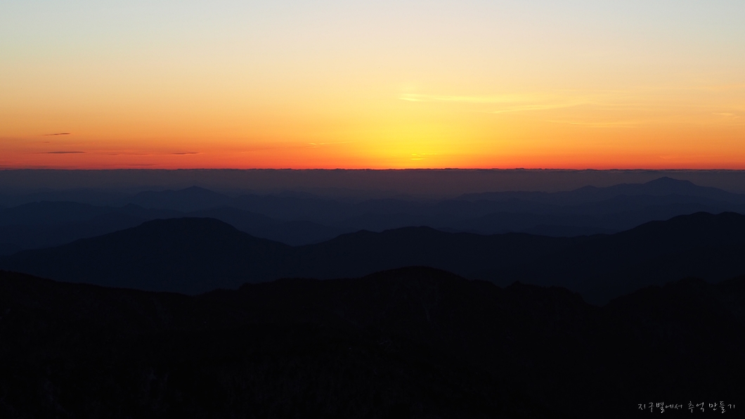 지리산 천왕봉의 일몰 구경은 쉽지 않은데 일단 장터목에 하루 머무는 계획이 있어야 가능합니다.