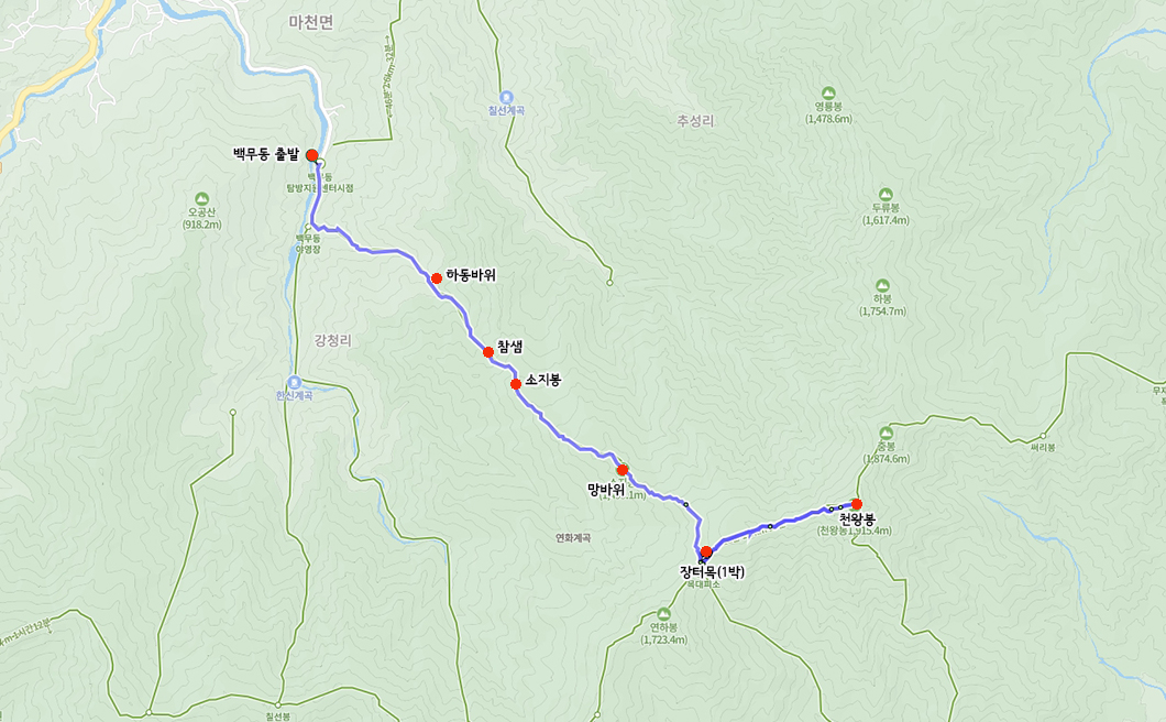 산행 코스 : 백무동 - 장터목 - 천왕봉 - 장터목