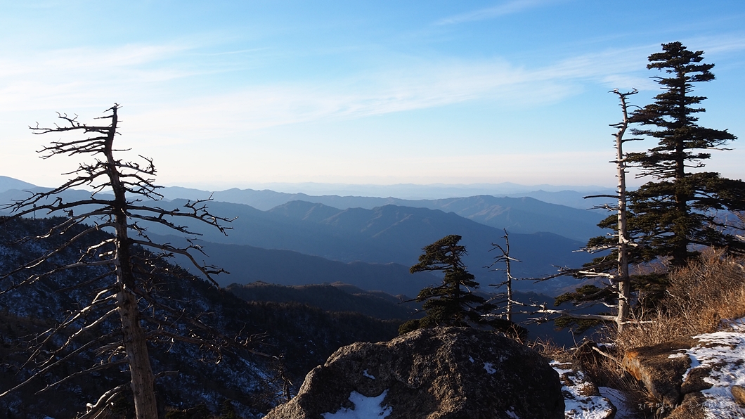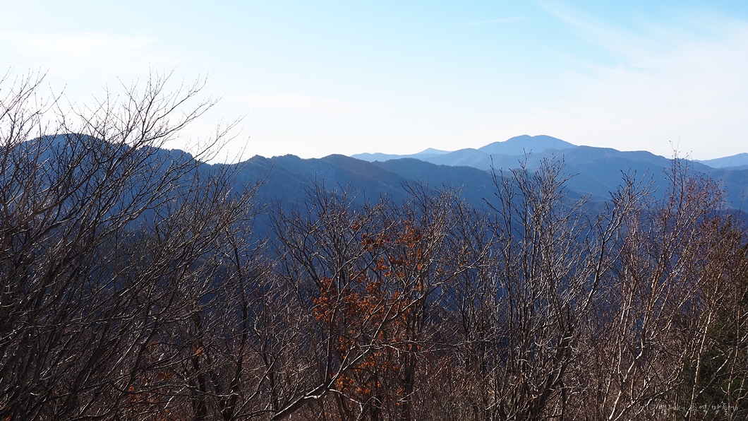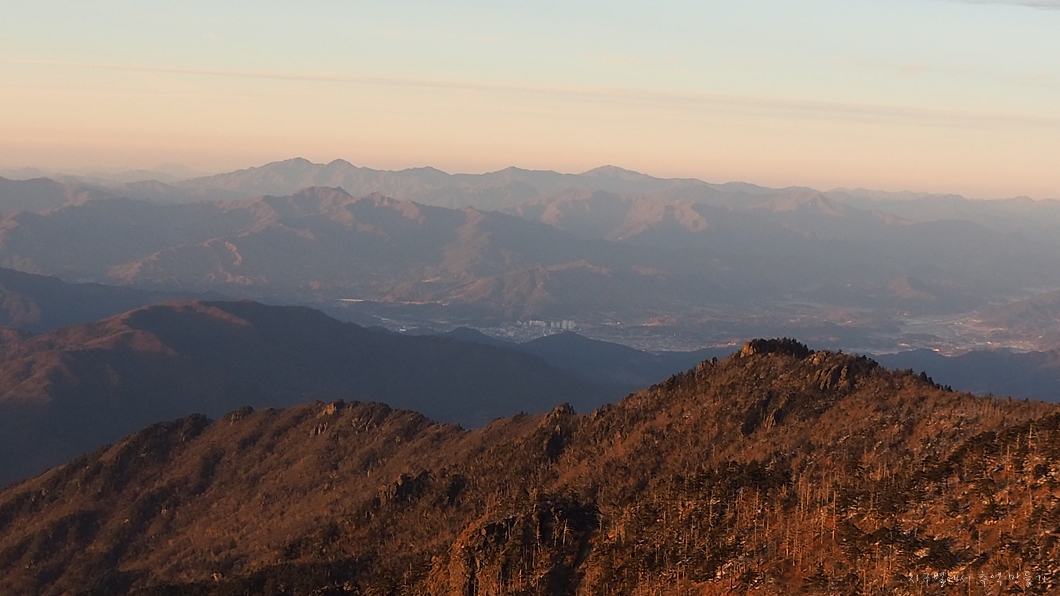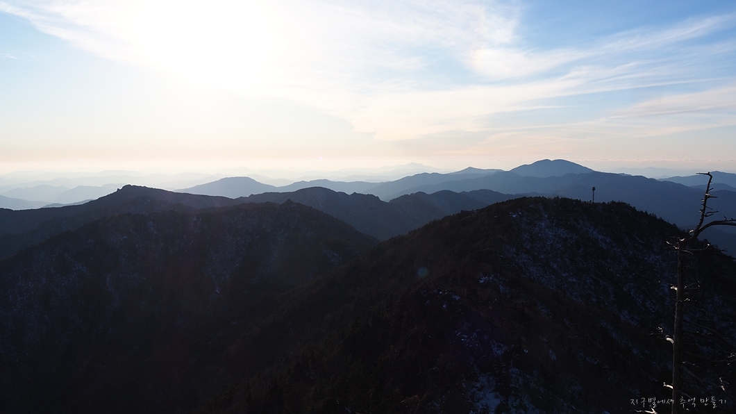 그 뒤로 장안산과 백운산 그리고 우측으로 대봉산의 계관봉과 천왕봉이 마지막으로 보입니다.
