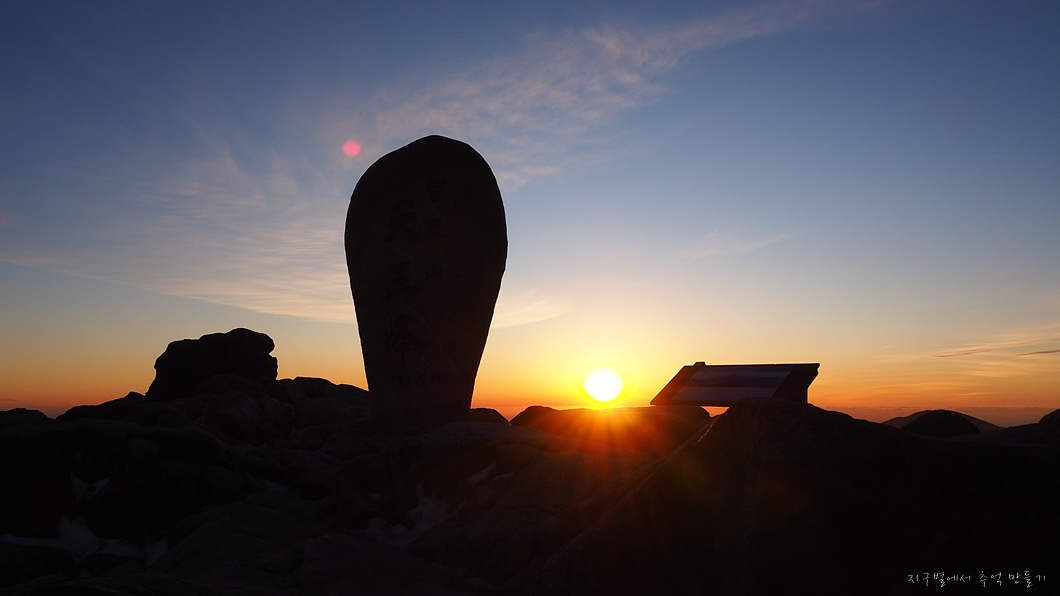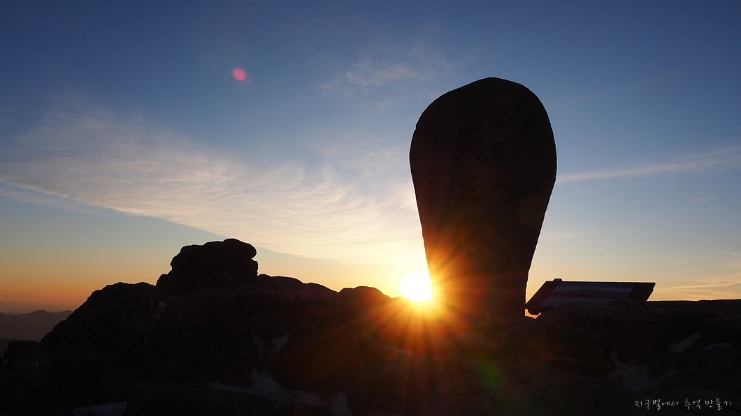 정상석 상단에 맞춘 일몰입니다.