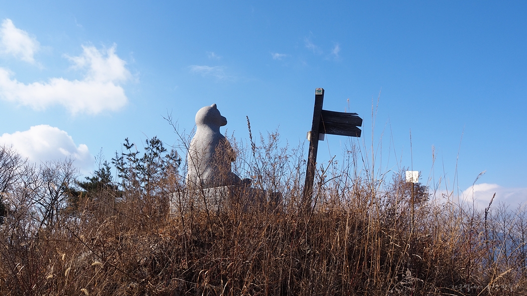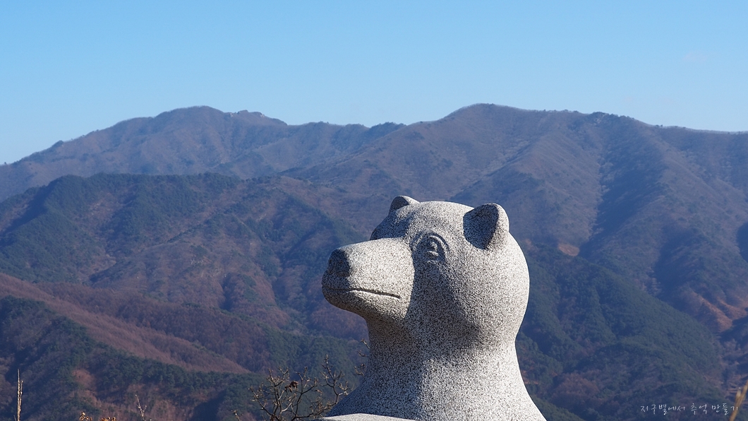 이곳 지역이 곰 웅(熊) 자가 들어간 웅양면(熊陽面)이라서 곰을 형상화하여 정상석을 만들었다고 합니다.