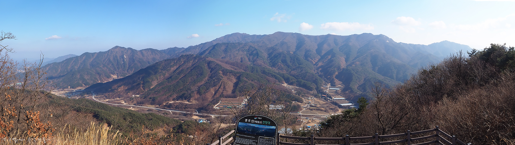 김천방향 3번 국도가 달리고 있고 그 뒤로 월매산 능선입니다.
