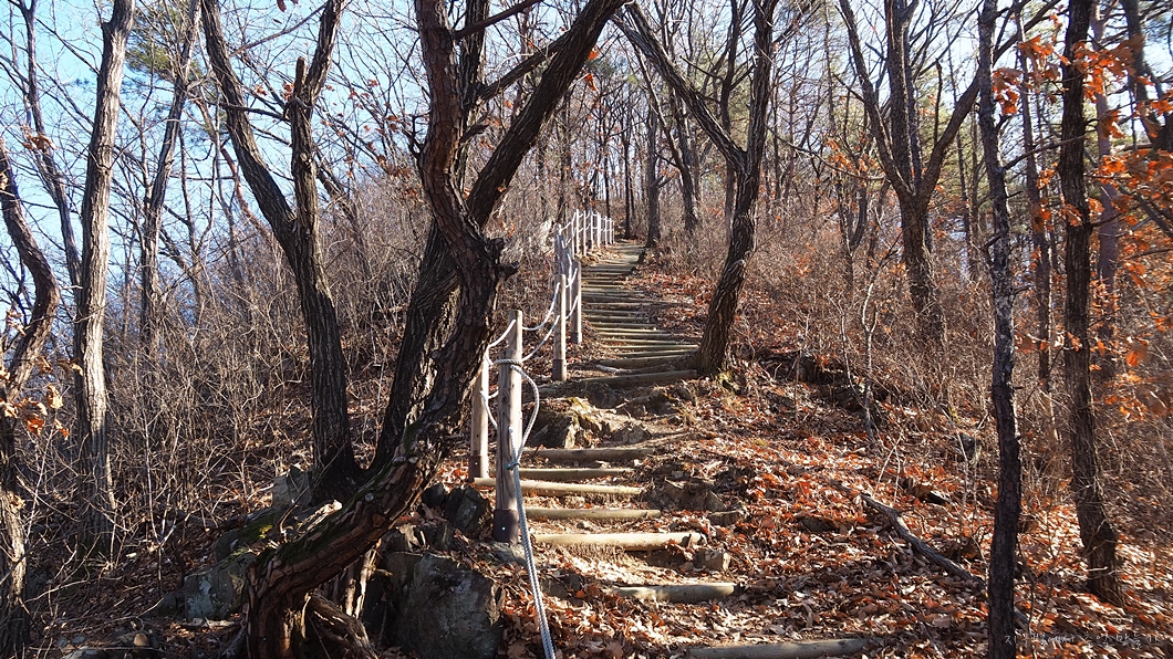정상 능선으로 오르는 길은 한없이 이어지는 계단길.