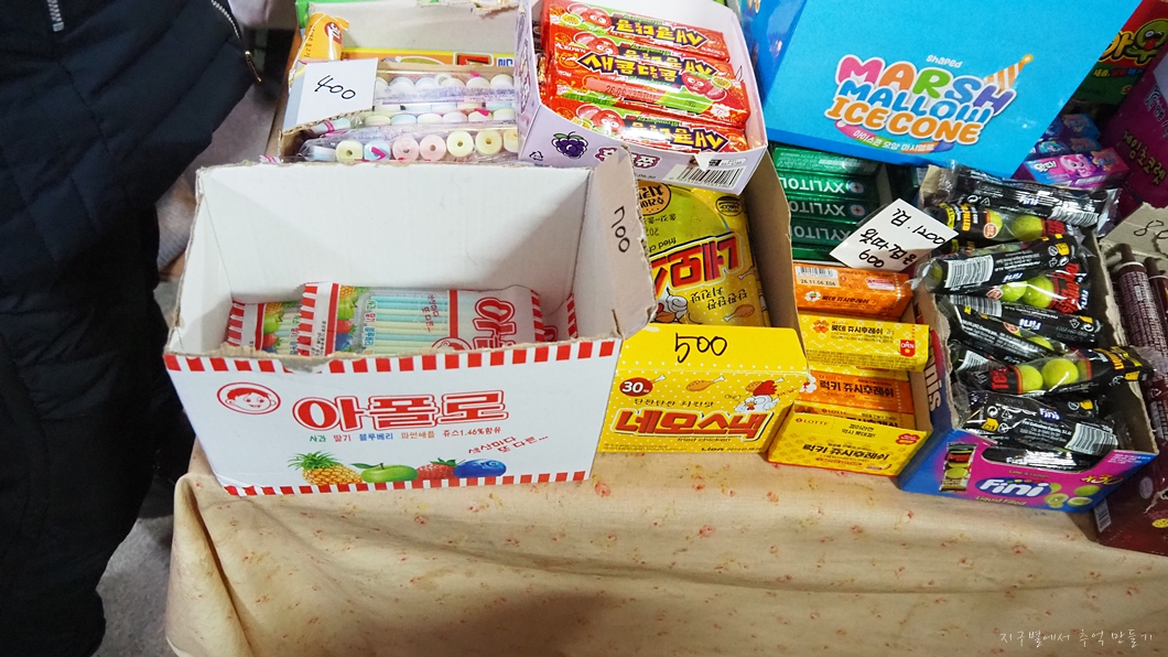 이런 종류의 과자들은 불량식품이란 이름으로 불리는데 사실은 모두 보사부 허가와 식약청허가를 제대로 받고 팔고 있는 정식 식품들입니다.
