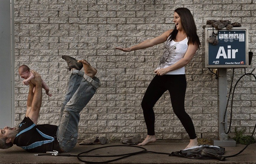 임신 기간 동안 여러 차례 지역 주유소를 방문하여 딸 쥐스틴이 세상에 태어나는 모습을 사진으로 담았는데 재치만발이구요.