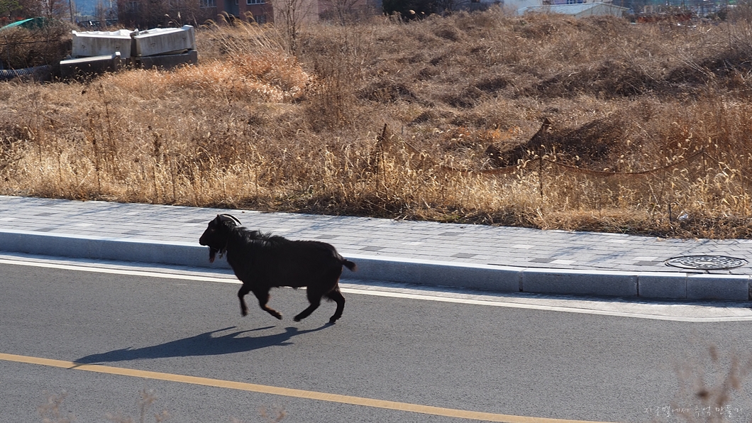 내가 도로까지 내려가는 시간에 이 넘은 온 도로를 뛰어다니다가 지나가는 자동차에 놀라서 다시 산으로 되돌아가는데 이 넘이 또 내가 내려가는 바로 눈앞으로 뛰어 올라가네요.