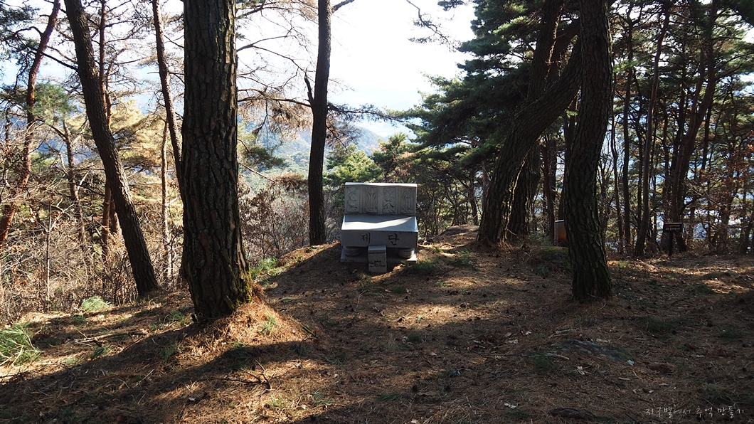 진행 방향으로 조금 더 이동하면 해맞이 제단이 설치되어 있는데 앞의 나무들이 가려서 멋진 해맞이는 하지 못할 듯.