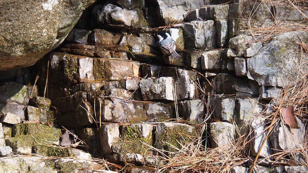 암자 바로 아래 계곡 양지에서 경양식으로 우아하게 식사를 하고 있는데 새들이 날아와서 물을 먹고 가는 장면이 자주 보입니다.